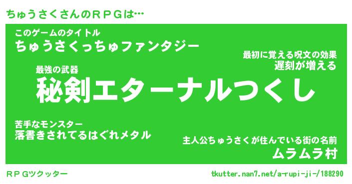 | ファンタジー風あだ名 | 『チュフェル』『エターナルチュウサクー』 |