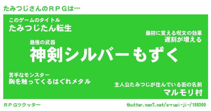 | 男性向けラノベタイトル風あだ名 | 『たみつじの憂鬱』 |