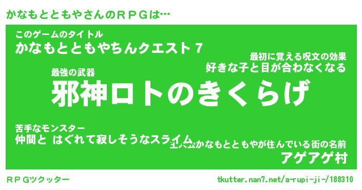| 伝説のあだ名 | 『封印されし竜騎士かなもとともや』 |