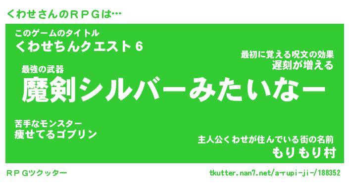 | ファンタジー風あだ名 | 『クワフェル』『エターナルクワセー』 |