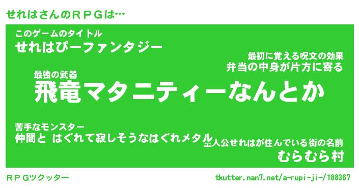 | ヘコむあだ名 | 『せれっふぃ~』『酢こんぶ』 |