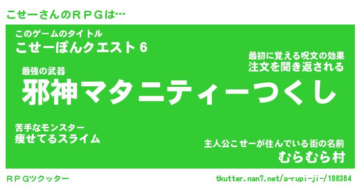 | ヒーロー風カッコイイあだ名 | 『スーパーコセー』『ウルトラこせーマン』 |