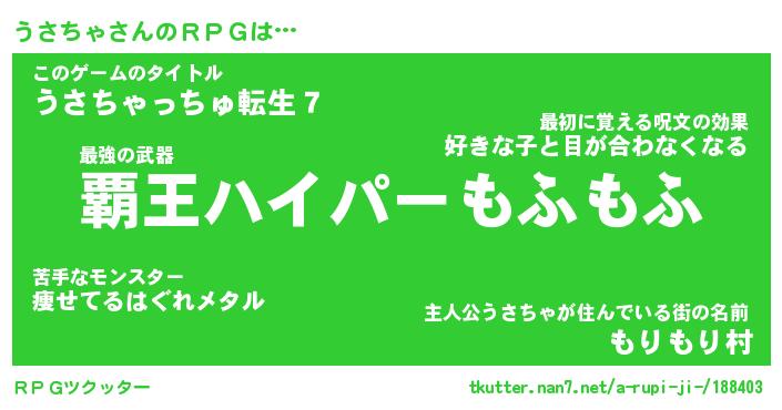 | 男性向けラノベタイトル風あだ名 | 『ウサチャアートオンライン』 |