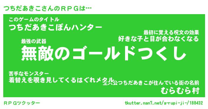 | ヒーロー風カッコイイあだ名 | 『スーパーツチダアキコ』『暗黒騎士ツチ』 |