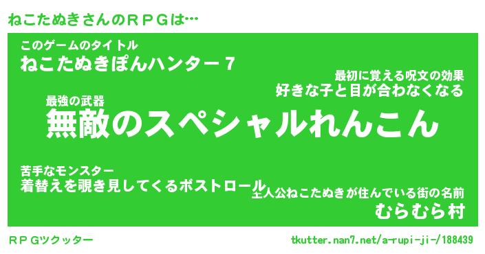 | ファンタジー風あだ名 | 『ネコフェル』『エターナルネコタヌキー』 |