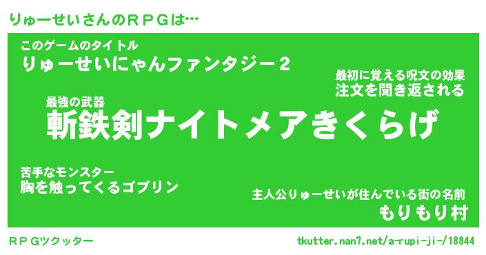 | 男性向けラノベタイトル風あだ名 | 『りゅーせいの憂鬱』 |
