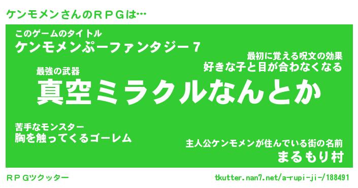 | ファンタジー風あだ名 | 『ケンフェル』『エターナルケンモメンー』 |