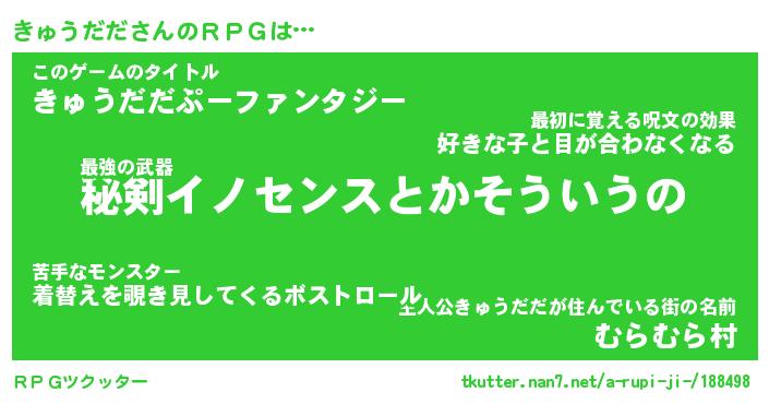 | 男性向けラノベタイトル風あだ名 | 『きゅうだだの憂鬱』 |