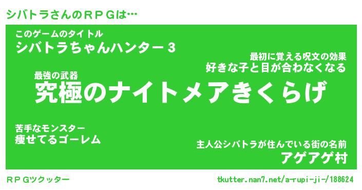 | ファンタジー風あだ名 | 『シバフェル』『エターナルシバトラー』 |