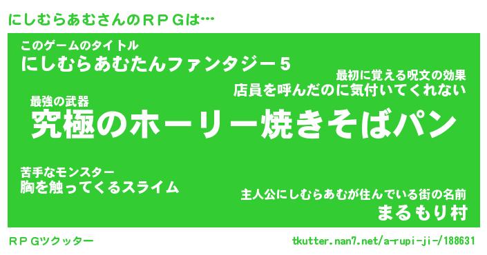 | 男性向けラノベタイトル風あだ名 | 『ニシムラアムアートオンライン』 |