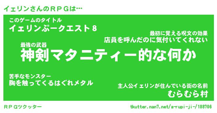 | 男性向けラノベタイトル風あだ名 | 『イェリンの憂鬱』 |