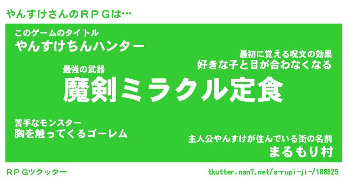 | 伝説のあだ名 | 『伝説の竜騎士やんすけ』 |