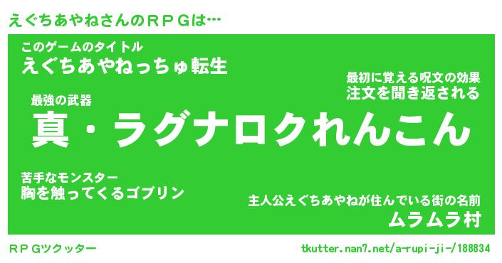 | 男性向けラノベタイトル風あだ名 | 『エグチアヤネアートオンライン』 |