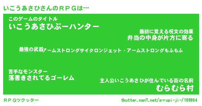 | 男性向けラノベタイトル風あだ名 | 『イコウアサヒアートオンライン』 |