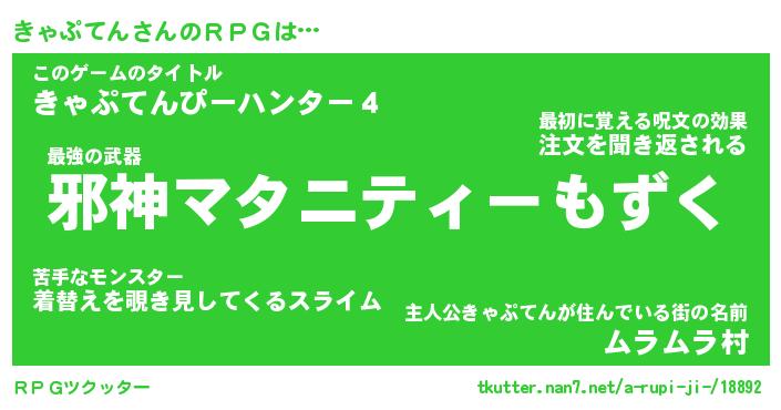 | ファンタジー風あだ名 | 『キャフェル』『エターナルキャプテンー』 |