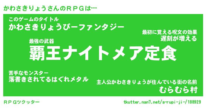| 肩書あだ名 | 『かわさきりょう御曹司』 |