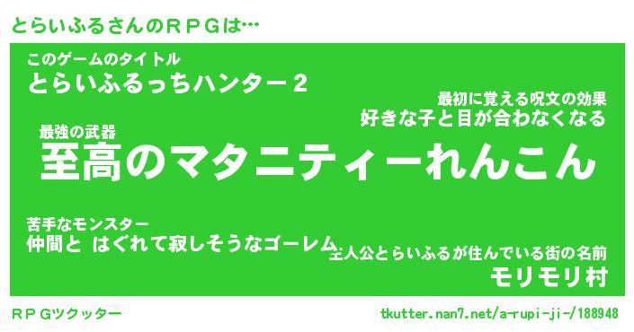 | 胡散臭い通販商品みたいなあだ名 | 『モテモテ間違いなし霊験あらたかなお札…その名も「とらいふる」』 |