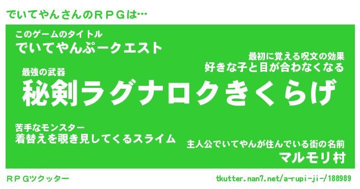 | ファンタジー風あだ名 | 『デイフェル』『エターナルデイテヤンー』 |