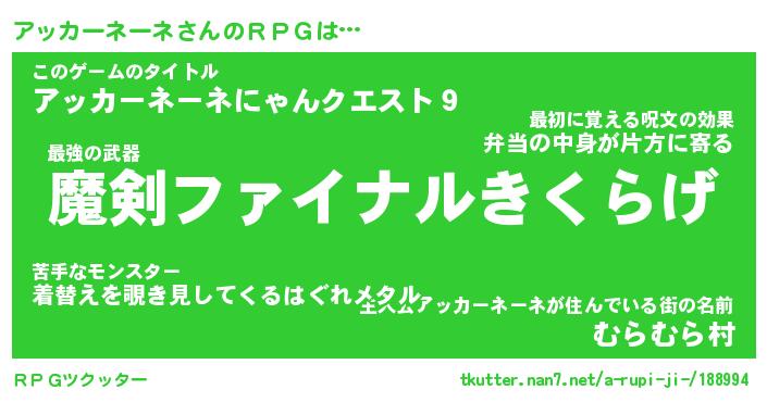 | ヒーロー風カッコイイあだ名 | 『スーパーアッカーネーネ』 |