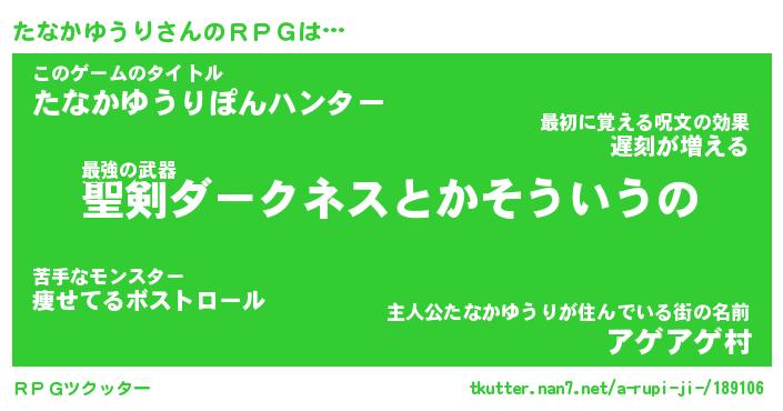 | ヒーロー風カッコイイあだ名 | 『スーパータナカユウリ』『魔戒騎士タナ』 |
