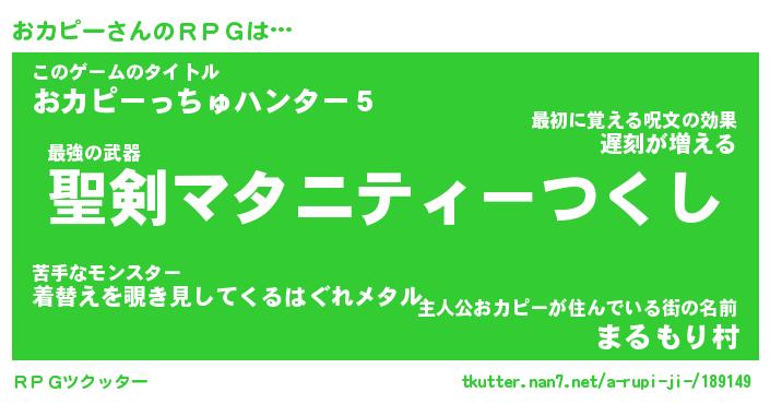 | 胡散臭い通販商品みたいなあだ名 | 『必ず成功する霊験あらたかなお札…その名も「おカピー」』 |