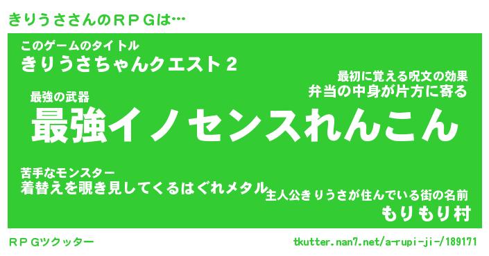 | 意味不明あだ名 | 『ペロリンきりうさ』『永久保存きりうさ』 |