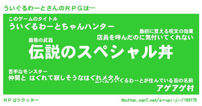 | 男性向けラノベタイトル風あだ名 | 『ういぐるわーとの憂鬱』 |
