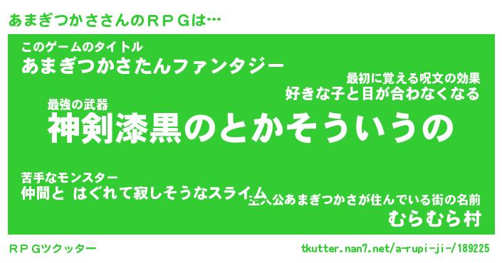| ヒーロー風カッコイイあだ名 | 『スーパーアマギツカサ』『暗黒騎士アマ』 |