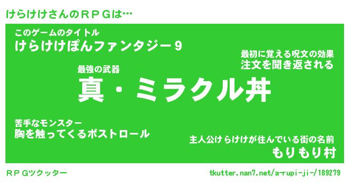 | ツイッター | けらけけさんのツイッターID『namakemono_man』 |