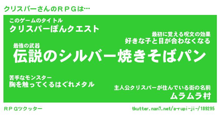 | ファンタジー風あだ名 | 『クリフェル』『エターナルクリスパーー』 |