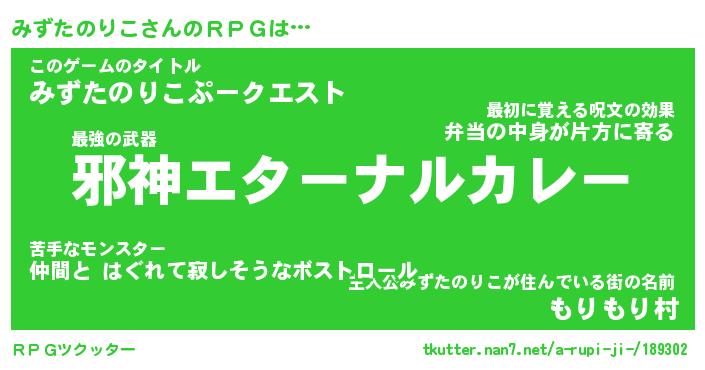 | 男性向けラノベタイトル風あだ名 | 『ミズタノリコアートオンライン』 |