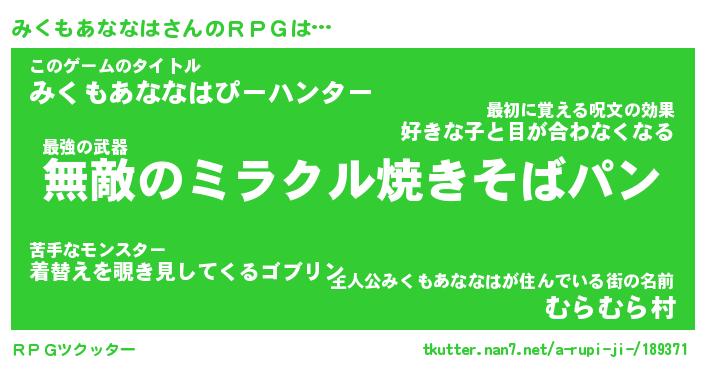 | 伝説のあだ名 | 『封印されし竜騎士みくもあななは』 |