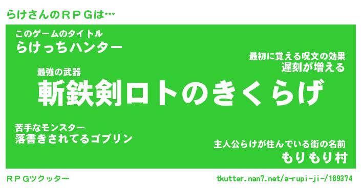 | 伝説のあだ名 | 『伝説の竜騎士らけ』『最強の忍者らけ』 |
