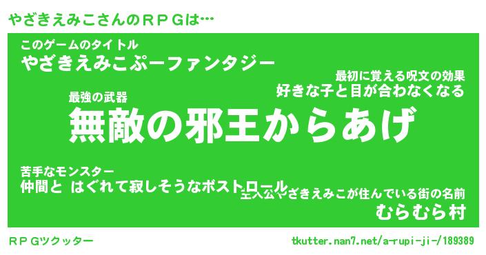 | ヒーロー風カッコイイあだ名 | 『スーパーヤザキエミコ』『炎刃騎士ヤザ』 |
