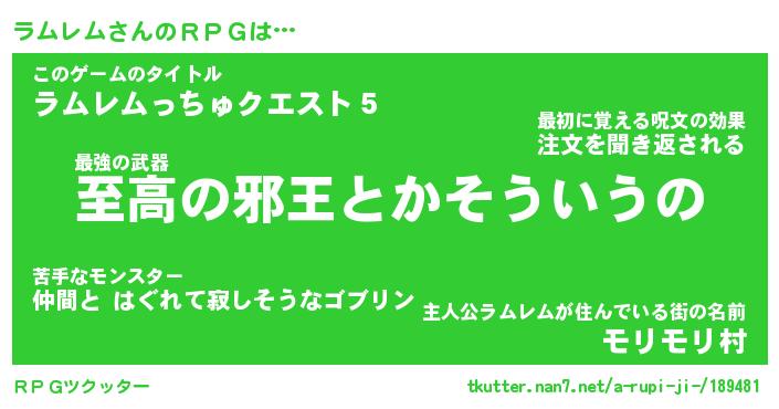 | 男性向けラノベタイトル風あだ名 | 『ラムレムアートオンライン』 |