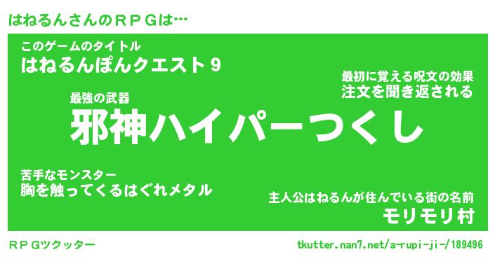 | 伝説のあだ名 | 『封印されし竜騎士はねるん』 |