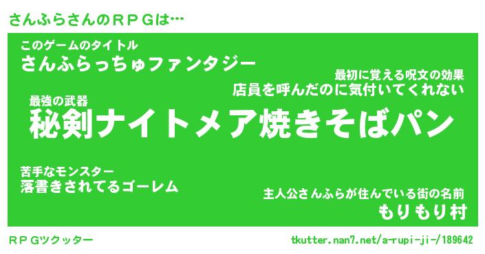 | 胡散臭い通販商品みたいなあだ名 | 『必ず成功する霊験あらたかなお札…その名も「さんふら」』 |