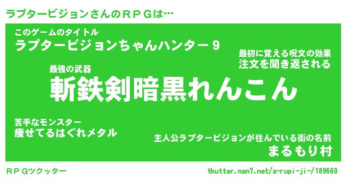 | 男性向けラノベタイトル風あだ名 | 『ラプタービジョンの憂鬱』 |