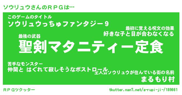 | 男性向けラノベタイトル風あだ名 | 『ソウリュウの憂鬱』 |