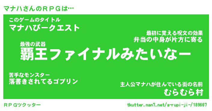 | 男性向けラノベタイトル風あだ名 | 『マナハアートオンライン』 |