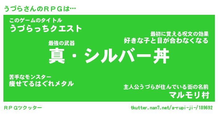 | ファンタジー風あだ名 | 『ウヅフェル』『エターナルウヅラー』 |