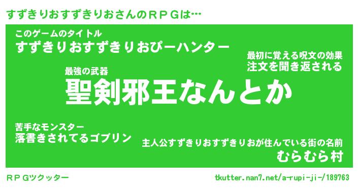 | 伝説のあだ名 | 『伝説の傭兵すずきりおすずきりお』 |