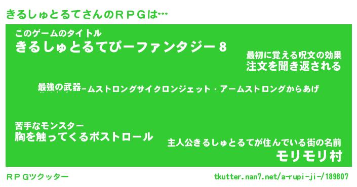 | 伝説のあだ名 | 『封印されし竜騎士きるしゅとるて』 |