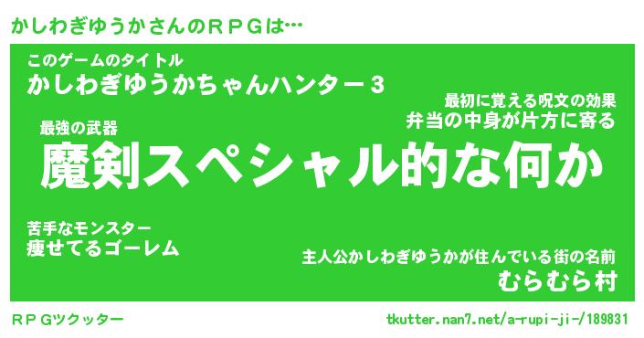 | 伝説のあだ名 | 『伝説の竜騎士かしわぎゆうか』 |