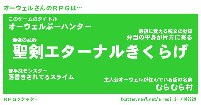 | ファンタジー風あだ名 | 『オーフェル』『エターナルオーウェルー』 |