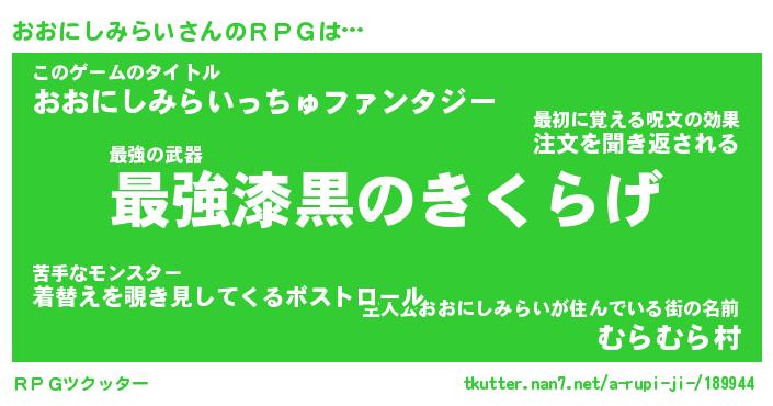 | 男性向けラノベタイトル風あだ名 | 『オオニシミライアートオンライン』 |