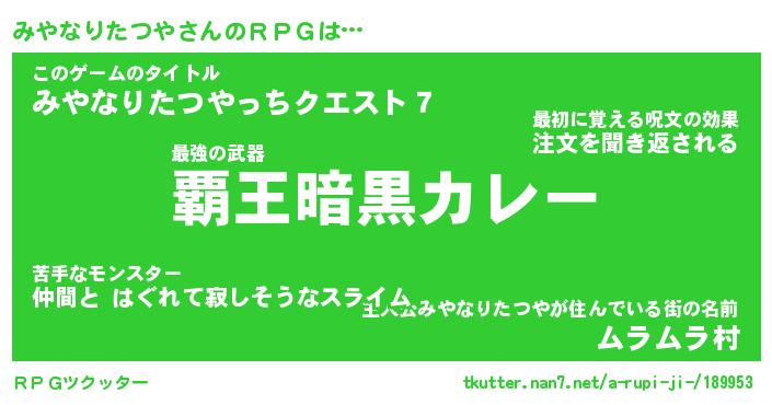 | 伝説のあだ名 | 『封印されし傭兵みやなりたつや』 |