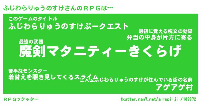 | ヒーロー風カッコイイあだ名 | 『スーパーフジワラリュウノスケ』 |