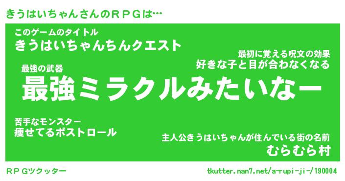 | 男性向けラノベタイトル風あだ名 | 『キウハイチャンアートオンライン』 |