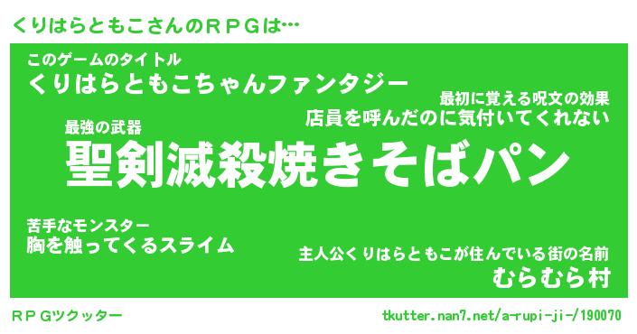 | 胡散臭い通販商品みたいなあだ名 | 『必ず成功する霊験あらたかなお札…その名も「くりはらともこ」』 |